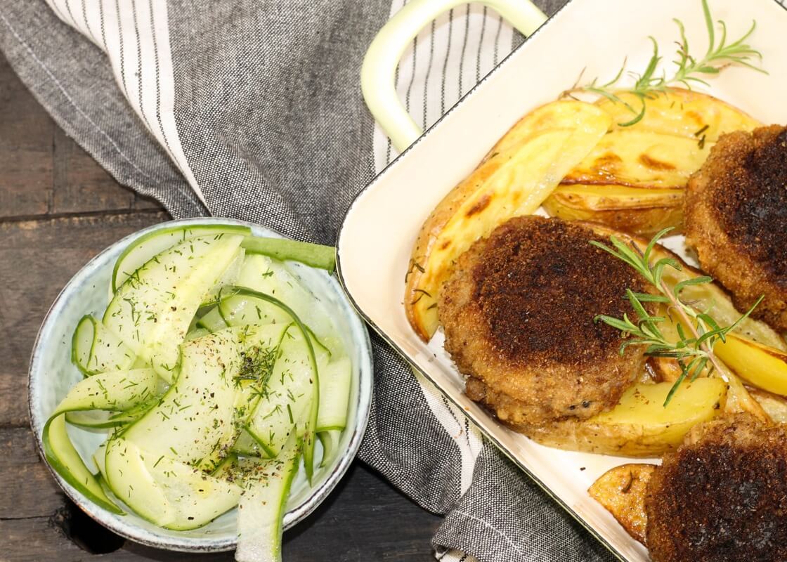 Das Knödelbrot in eine große Schüssel geben. Milch in einem Topf erwärmen ( nicht kochen) und über die Brotwürfel gießen. Gewürze zufügen und umrühren. Das Ei und Faschierte unterkneten und alles mit den Händen gut vermischen. Im Kühlschrank für eine halbe Stunde ziehen lassen. Eventuell ein kleines Probelaibchen machen und bei Bedarf die Masse nachwürzen. Zu Laibchen formen, von beiden Seiten in Vollkornbrösel wälzen und bei nicht zu heißer Flamme braten.
