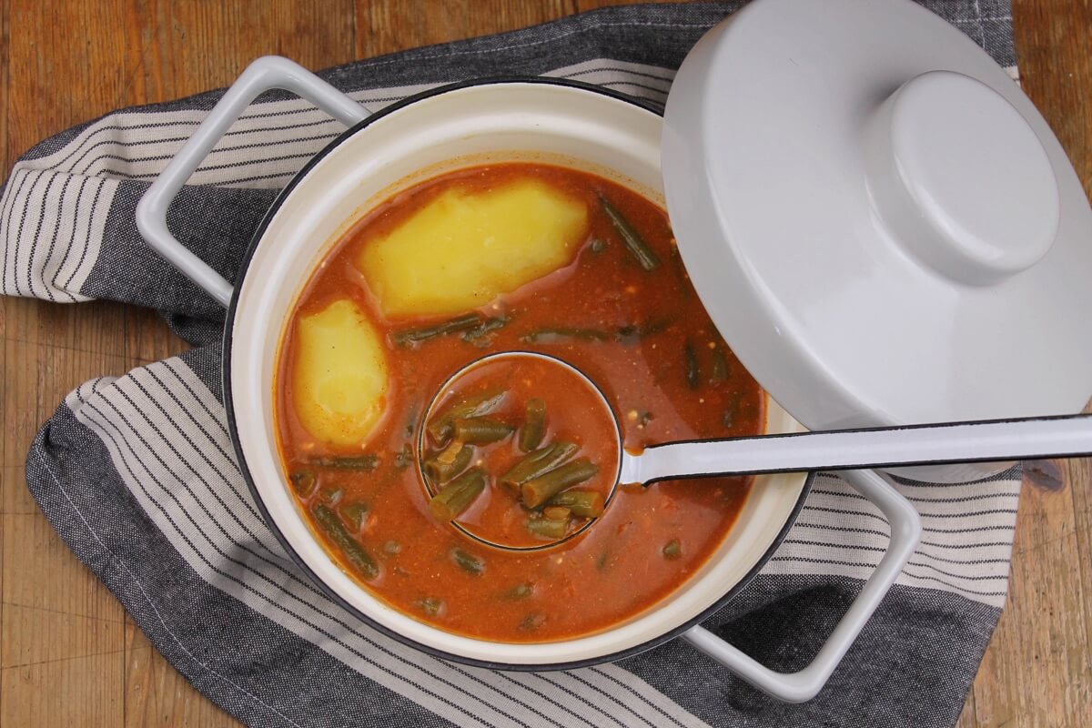 Fisolen wasche, die Enden entfernen und in Stücke schneiden. Zwiebel hacken und in etwas Öl glasig rösten. Fisolen und Knoblauchzehe zufügen und auch mitrösten. Paprikapulver,Salz,Kümmel und Pfeffer untermischen und alles mit der Rinderbrühe aufgießen. Gut verrühren und auf kleiner Flamme für 20 min köcheln lassen. Bei Bedarf Wasser zufügen. Zum Schluß Sauerrahm unterrühren und nachwürzen.