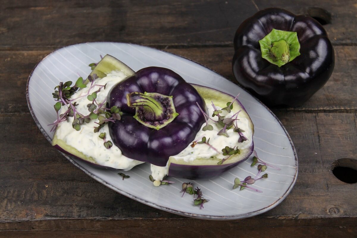Schwarzer Paprika mit Kräuterquark